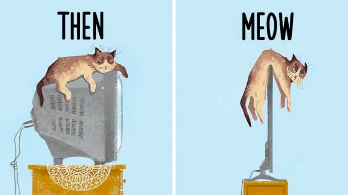 Prešlo pár rokov a život sa nezmenil len nám ľuďom, ale taktiež aj našim zvieratám. Moderná doba plná technickych pokrokov ovplyvnila rovnako našich domácich miláčikov. Pozrite sa teda na pár príkladov toho, ako si nažívali také mačky vtedy a ako si nažívajú teraz. Ide o pravdivé a vtipné príklady, ktoré poukazujú na zmenu doby.